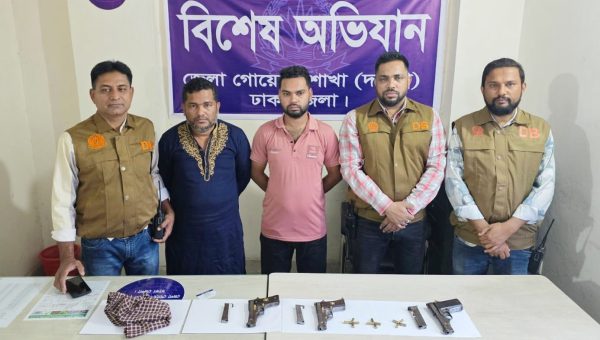 কেরাণীগঞ্জে ডিবি দক্ষিণের বিশেষ অভিযান: ৩টি পিস্তলসহ গ্রেফতার ২ জন।