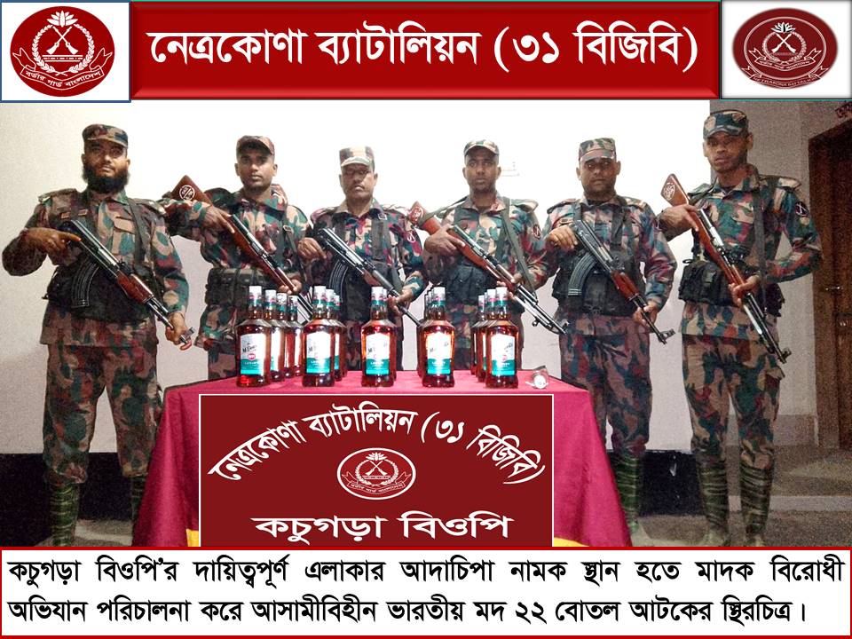 মালিক বিহীন ২২ বোতল ভারতীয় মদ আটক