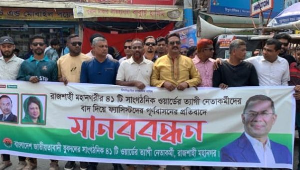 রাজশাহী যুবদলে ফ্যাসিস্টদের পুনর্বাসনের অভিযোগ সাখাওয়াত হাসান রাজশাহী জেলা প্রতিনিধি রাজশাহী মহানগর যুবদলের ৪১টি সাংগঠনিক ওয়ার্ডে ত্যাগী নেতাকর্মীদের বাদ দিয়ে ‘ফ্যাসিস্টদের পুনর্বাসন’ -এর অভিযোগ তুলে মানববন্ধন করেছেন বঞ্চিত নেতাকর্মীরা। রোববার দুপুর ১২টায় নগরীর সাহেববাজার জিরোপয়েন্ট এলাকায় এ কর্মসূচি অনুষ্ঠিত হয়। বক্তারা বলেন, গত ১৭ বছর ‘ফ্যাসিস্ট হাসিনা সরকার’ পতনের আন্দোলনে রাজশাহী মহানগর যুবদলের নেতাকর্মীরা আওয়ামী লীগের শাসনামলে জেল-জুলুম, হামলা-মামলা ও নির্যাতনের শিকার হয়েছেন। অনেকেই দীর্ঘ সময় বাড়িতে অবস্থান করতে পারেননি। তাদের অভিযোগ, সেই ত্যাগী ও রাজপথের পরীক্ষিত নেতাকর্মীদের বাদ দিয়ে মহানগরীর ৪১টি সাংগঠনিক ওয়ার্ডের কমিটিতে আওয়ামী লীগের লোকজনকে পুনর্বাসন করা হচ্ছে। এ ঘটনায় তারা তীব্র নিন্দা ও প্রতিবাদ জানান। মানববন্ধন থেকে মহানগর যুবদলের ৪১টি ওয়ার্ডে গঠিত নতুন ‘পকেট কমিটি’ বাতিল করে অনতিবিলম্বে পুনরায় কমিটি গঠনের দাবি জানানো হয়। পাশাপাশি আন্দোলন-সংগ্রামে পরীক্ষিত, ত্যাগী ও নির্যাতিত নেতাকর্মীদের নতুন কমিটিতে অন্তর্ভুক্ত করার আহ্বান জানানো হয়। বক্তারা আরও অভিযোগ করেন, ৫ আগস্টের আগে যারা স্বৈরাচারী আওয়ামী লীগের বিভিন্ন কমিটিতে ছিলেন- এমন যুবলীগ ও ছাত্রলীগের ক্যাডারদের অর্থের বিনিময়ে (প্রায় ২০০ জন) যুবদলের ৪১টি ওয়ার্ড কমিটিতে স্থান দেওয়া হয়েছে। এর মাধ্যমে রাজশাহী মহানগর যুবদলের সাংগঠনিক ভিত্তি দুর্বল করার চেষ্টা চলছে বলেও দাবি করা হয়। এ ঘটনায় রাজশাহী মহানগর বিএনপি ও যুবদলের কয়েকজন নেতার সংশ্লিষ্টতা রয়েছে বলে অভিযোগ তোলা হয়। এছাড়া, অতীতে আওয়ামী লীগের পক্ষে কাজ করার অভিযোগে দলীয়ভাবে শোকজ হওয়া ব্যক্তিদের বিরুদ্ধে সাংগঠনিক ব্যবস্থা গ্রহণ ও বহিষ্কারের দাবি জানানো হয়