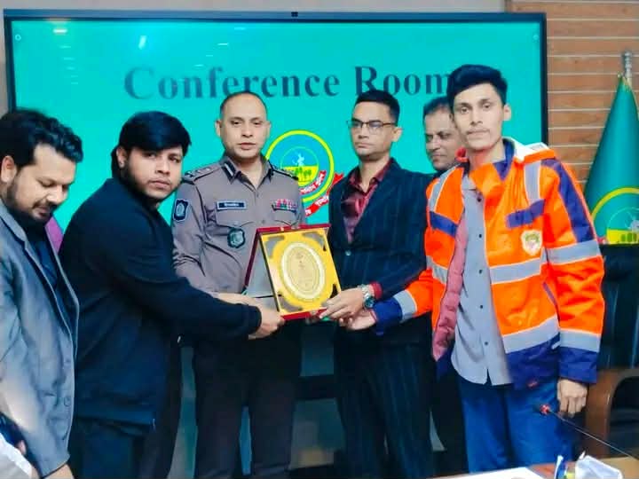 গাজীপুর মেট্রোপলিটন পুলিশ কমিশনারকে আন্তর্জাতিক মানবাধিকার আইন সহায়তা প্রদানকারী সংস্থা ও বাংলাদেশ ইয়ুথ রেভুলেশনের পক্ষে সম্মাননা প্রদান।