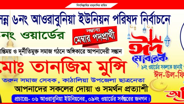 পবিত্র ঈদুল ফিতরের শুভেচ্ছা জানিয়েছেন মোঃ তানজিম মুন্সী।